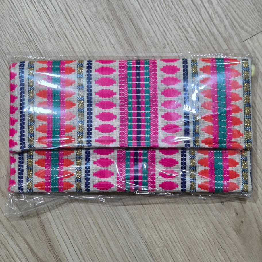 Bolso de mano confeccionados de manera artesanal. Piezas únicas hechas a mano con un elegante colorido. Apto para cerrar y colgar. Forrado con un bolsillo interior.